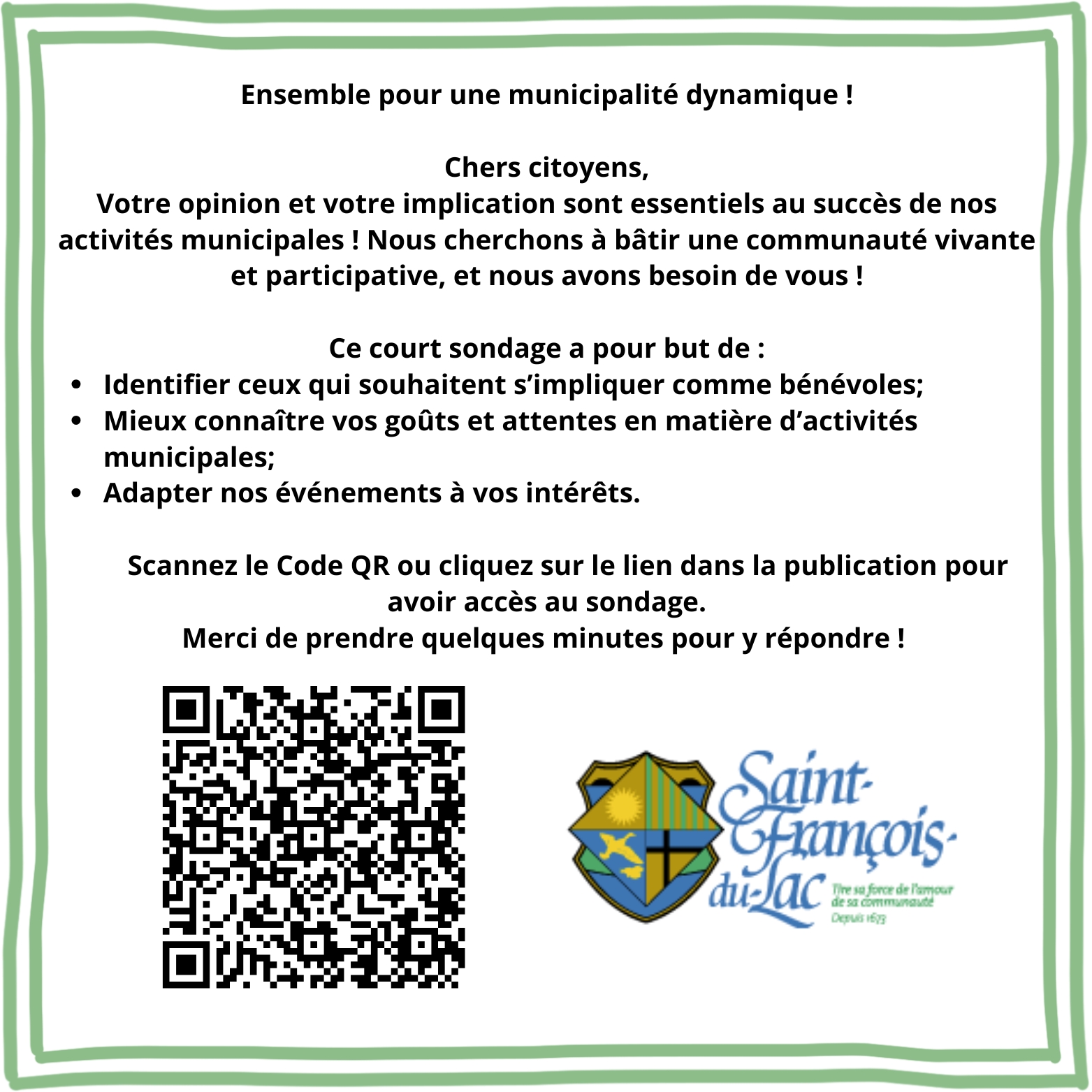 Sondage pour les citoyens de Saint-François-du-Lac: Ensemble pour une municipalité dynamique !