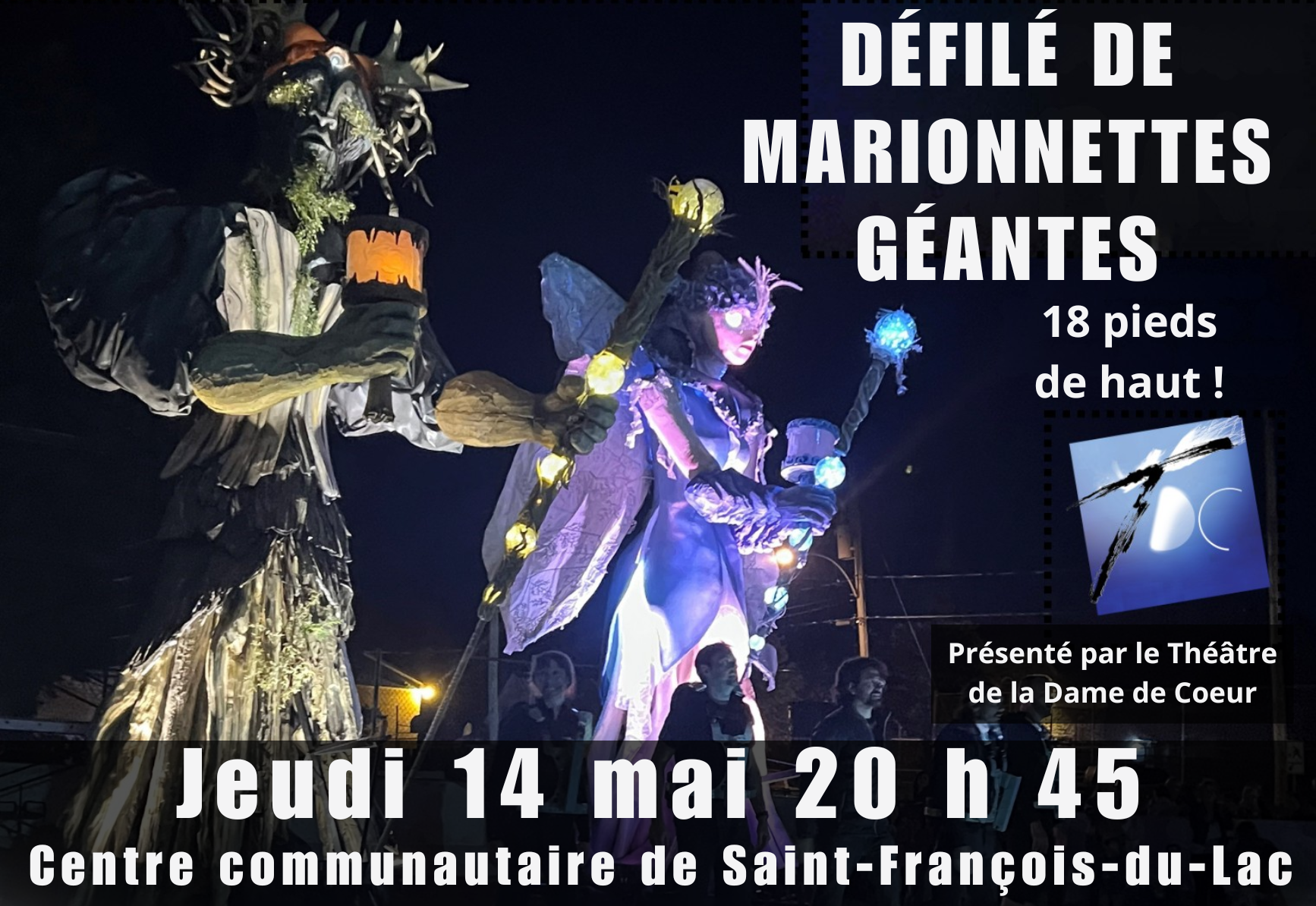 Au coucher du soleil, venez admirer les 2 marionnettes géantes de 18 pieds pour le spectacle ACUPUNK.