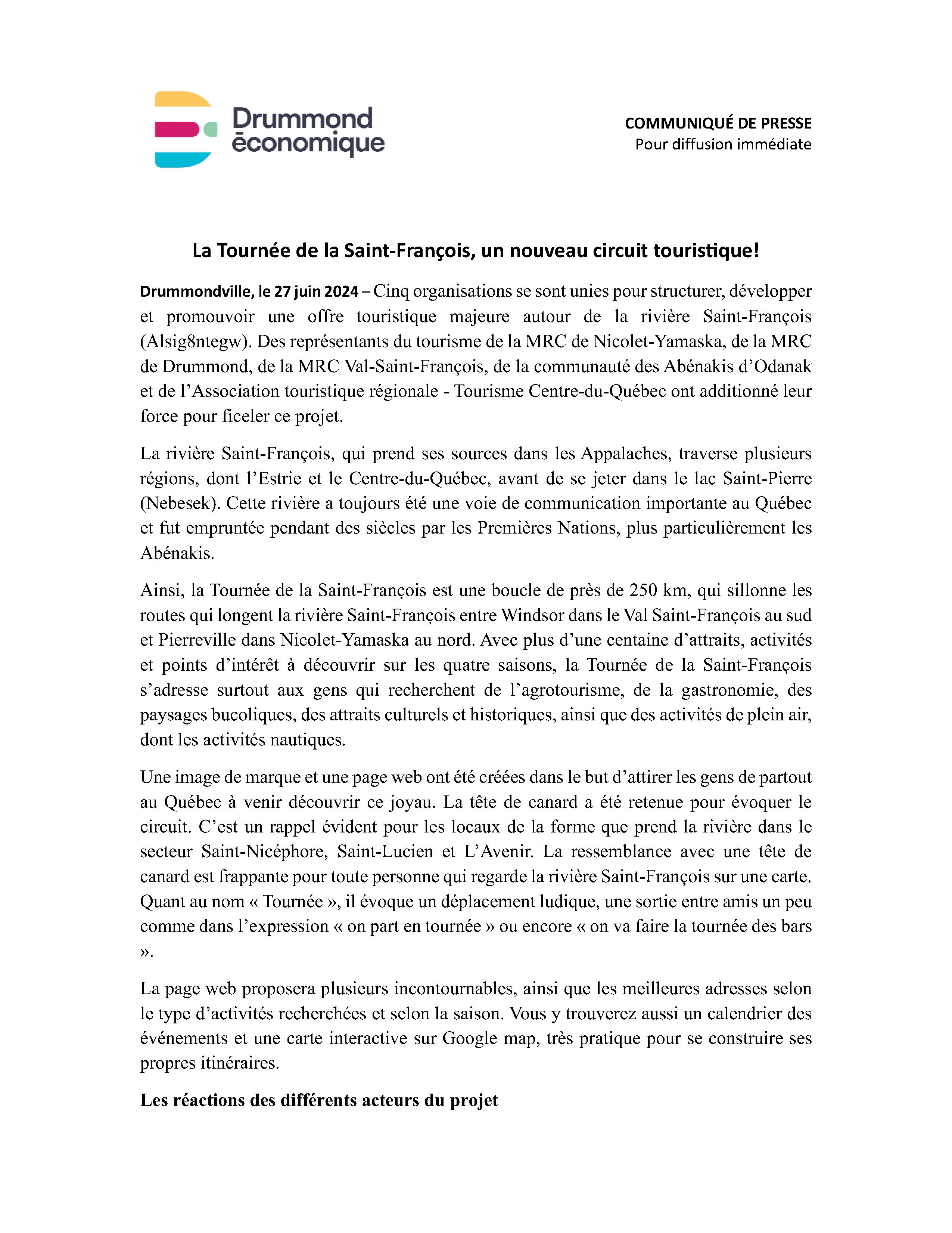 Le 27 juin dernier a eu lieu le lancement de La Tournée de la Saint-François, un tout nouveau circuit touristique pour découvrir les régions bordant la rivière Saint-François.
