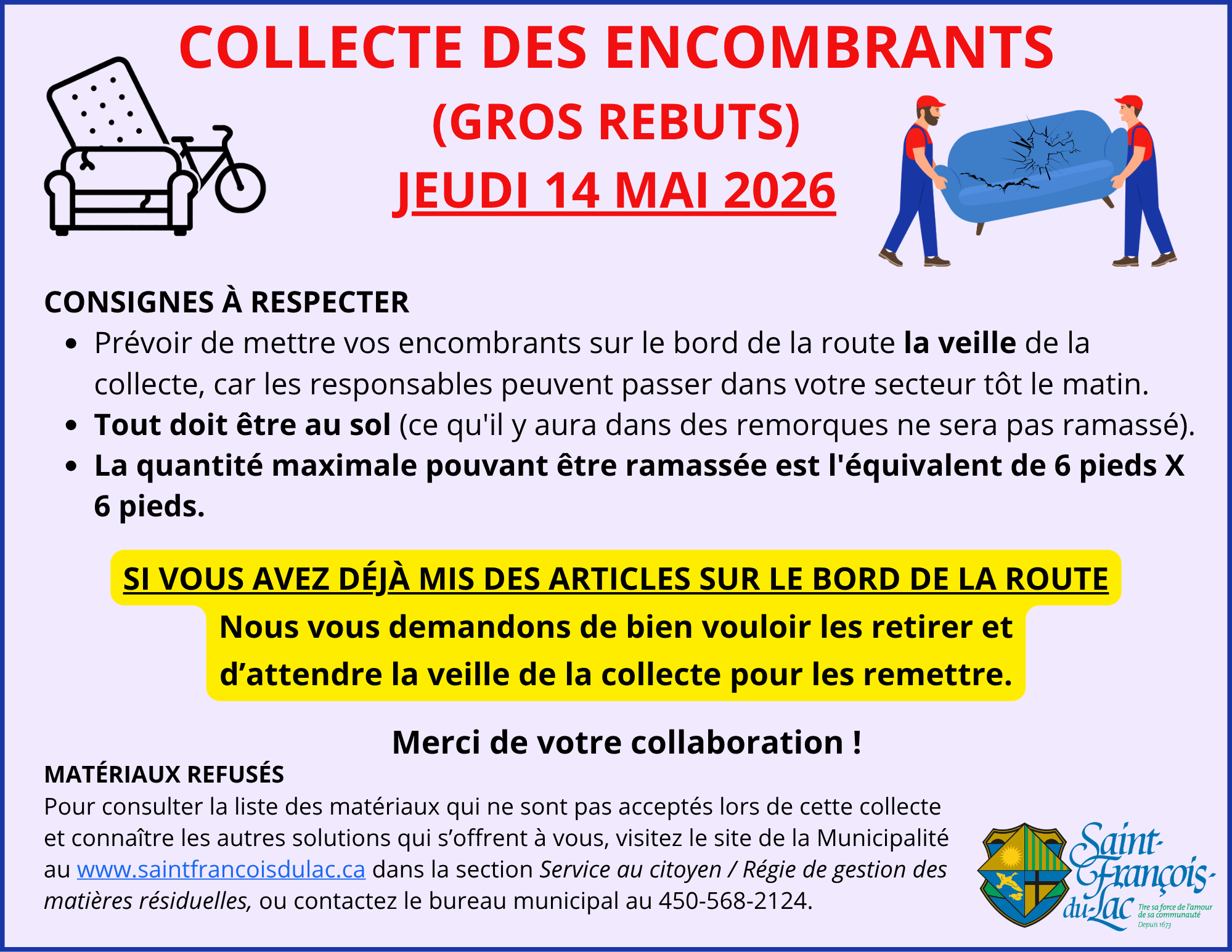 COLLECTE DES ENCOMBRANTS | JEUDI 14 MAI 2026