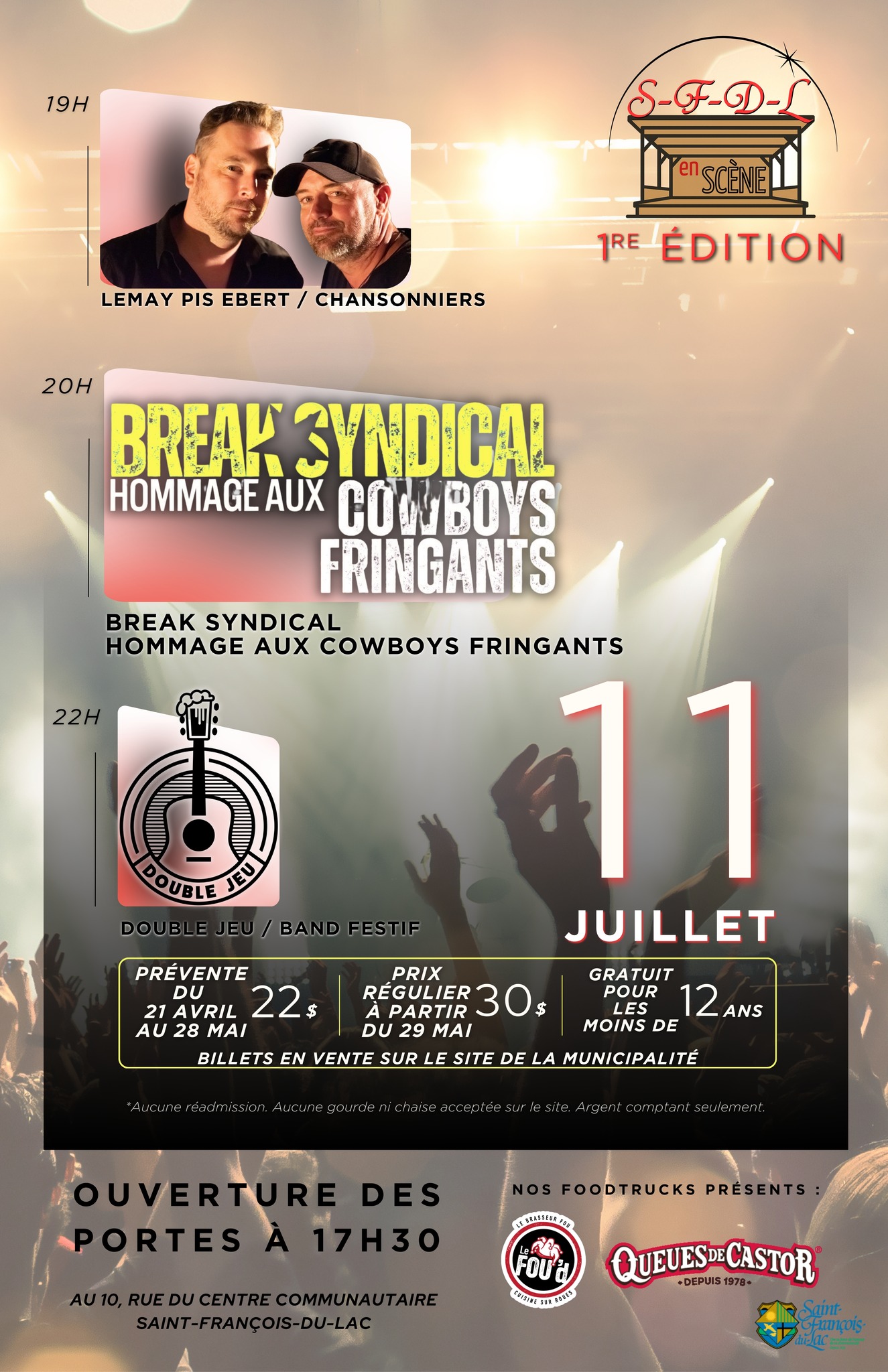 Ce vendredi, 11 juillet 2025, dès 17h30, la Municipalité de Saint-François-du-Lac vous invite à sa toute première édition estivale de S-F-D-L en scène !