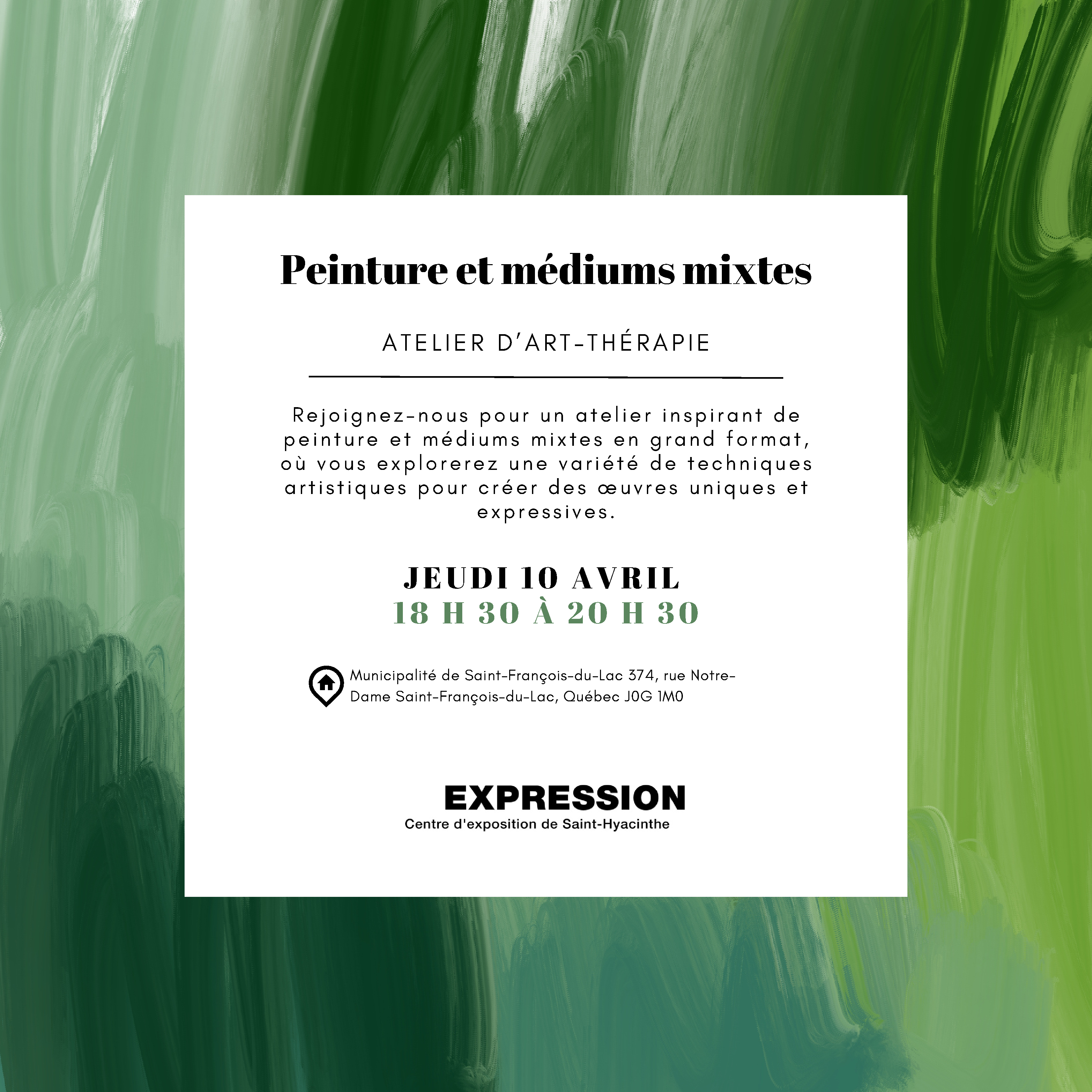 Rejoignez-nous pour un atelier inspirant de peinture et médiums mixtes en grand format, où vous explorerez une variété de techniques artistiques pour créer des oeuvres uniques et expressives.