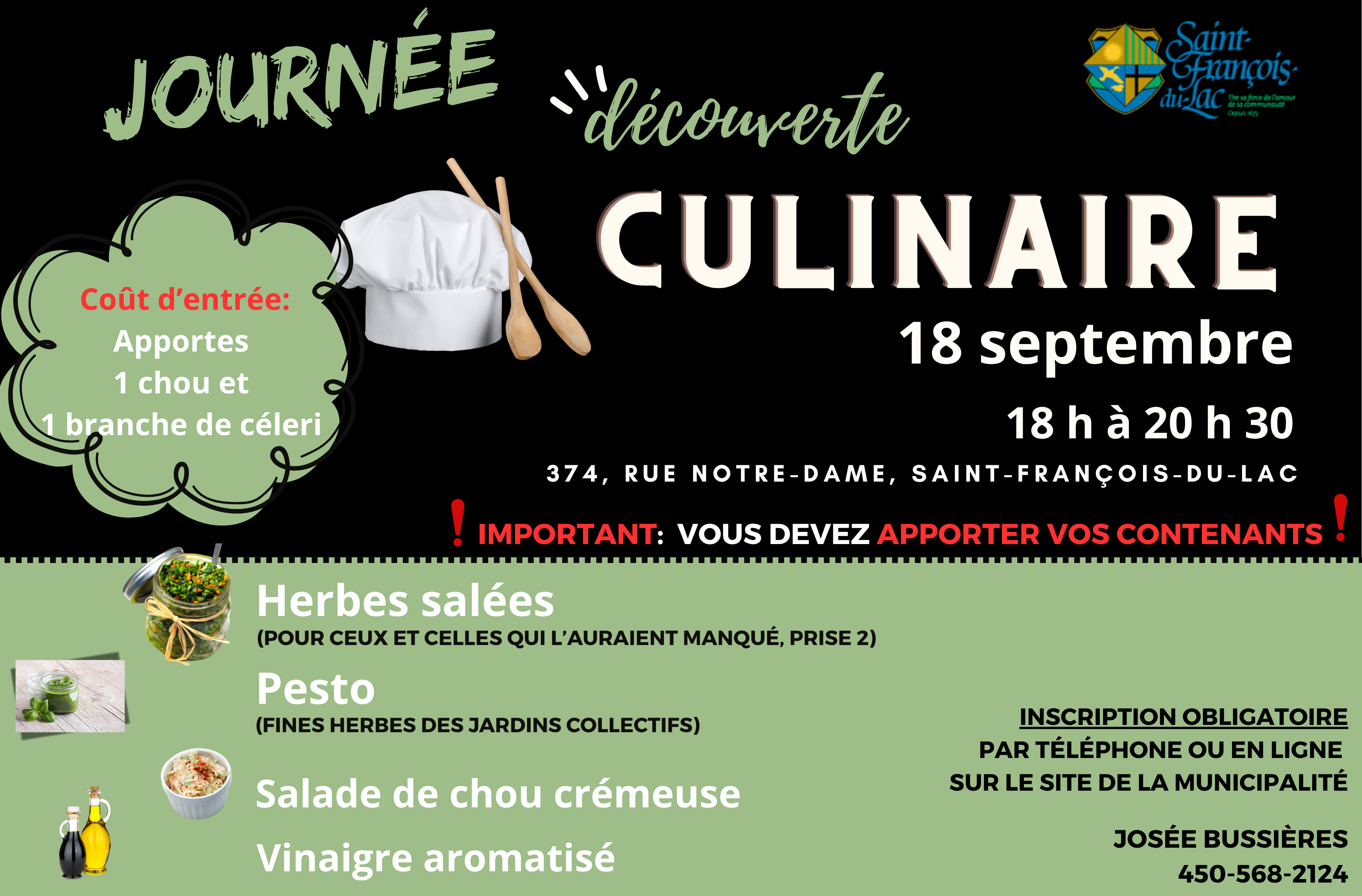 Apportez vos contenants (dont un pour le vinaigre) ainsi que votre chou et votre branche de céleri :) !
